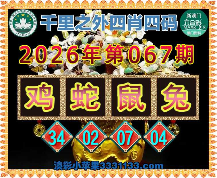 067期:《千里之外》 四肖四码【鸡蛇鼠兔】【34.02.07.04】开:虎05