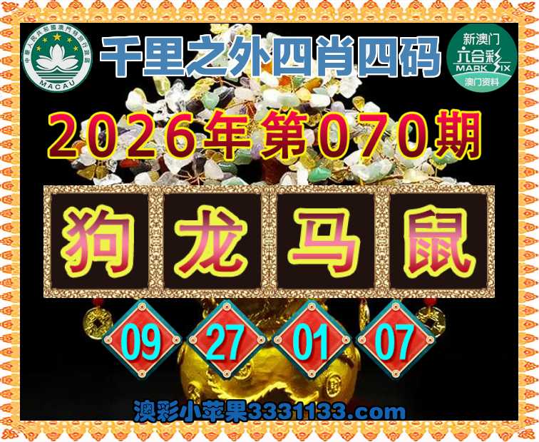 070期:《千里之外》 四肖四码【狗龙鼠】【09.27.01.07】开:马25准上榜高手