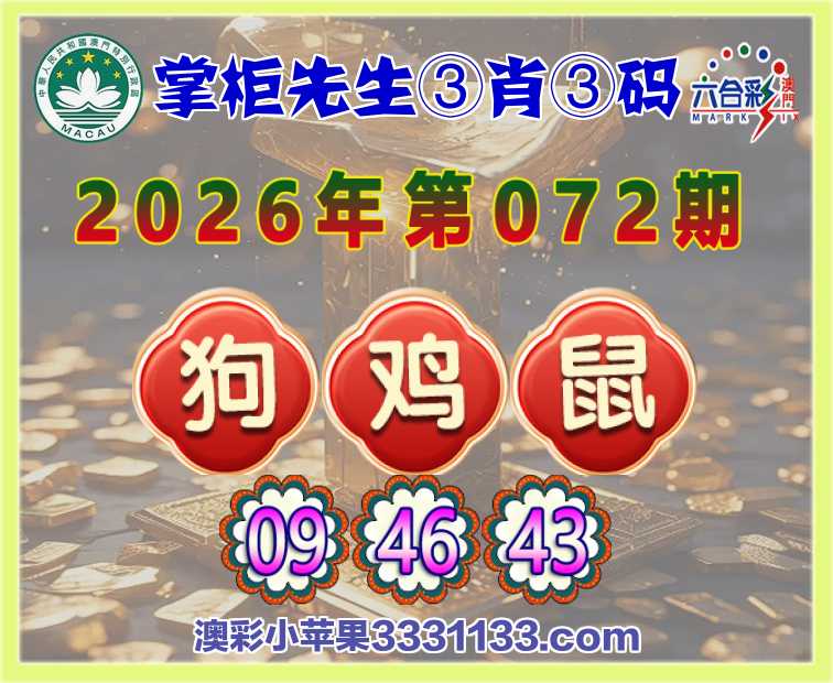 072期:《掌柜先生》 ③肖③码【狗鼠】【09.46.43】开:鸡46准上榜高手