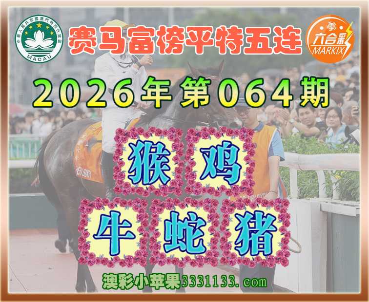 064期:《赛马富榜》 平特五连【猴鸡牛蛇猪】开:猴23,鸡34,牛18,蛇02,猪08