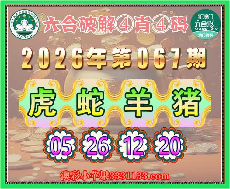 067期:『六合破解』 ④肖④码蛇羊猪】【05.26.12.20】开:虎05