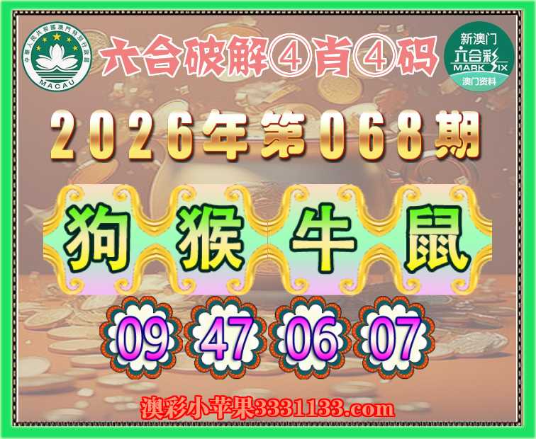 068期:『六合破解』 ④肖④码【狗牛鼠】【09.47.06.07】开:猴23
