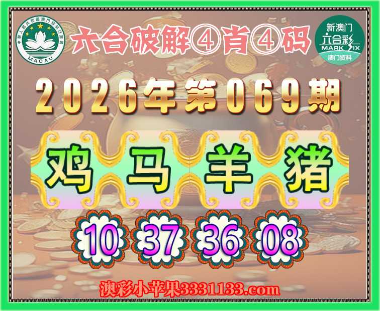 069期:『六合破解』 ④肖④码【鸡马猪】【10.37.36.08】开:羊24