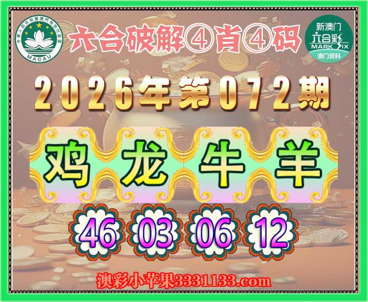 072期:『六合破解』 ④肖④码龙牛羊】【46.03.06.12】开:鸡46准上榜高手