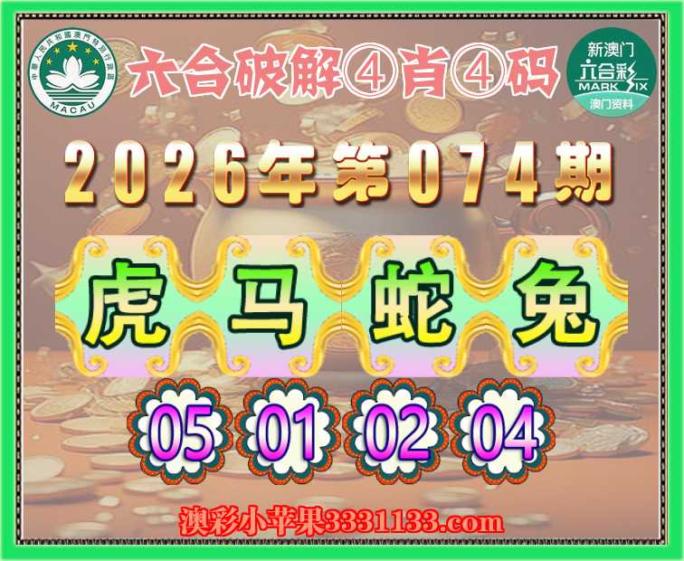 074期:『六合破解』 ④肖④码【虎马蛇兔】【05.01.02.04】开:00准