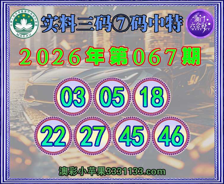 067期:【实料三码】 ⑦码中特【03.05.18.22.27.45.46】开:05
