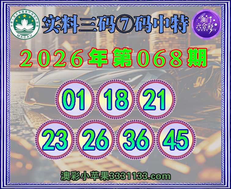 068期:【实料三码】 ⑦码中特【01.18.21.23.26.36.45】开:23