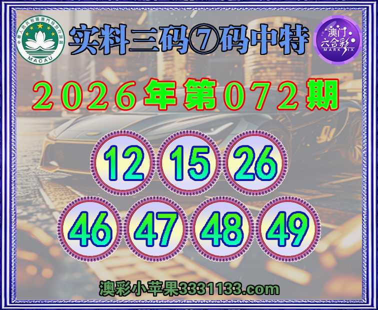 072期:【实料三码】 ⑦码中特【12.15.26.46.47.48.49】开:46准上榜高手