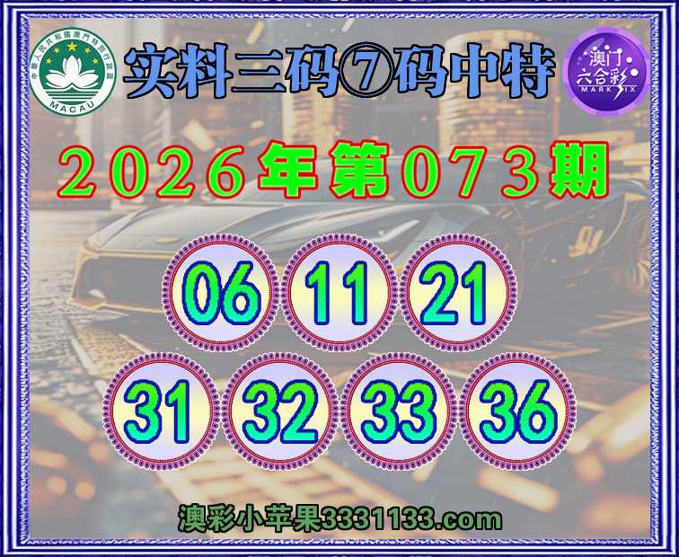 073期:【实料三码】 ⑦码中特【06.11.21.31.32.33.36】开:34