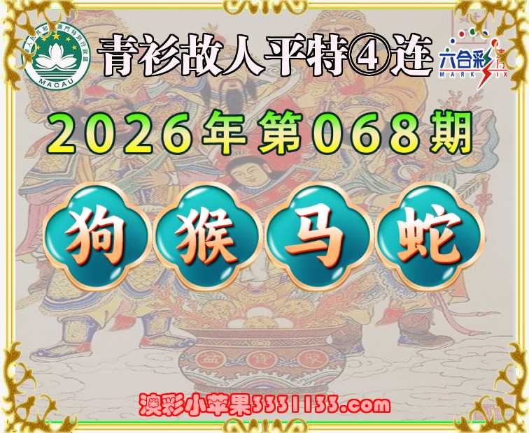 068期: 『青衫故人』 平特④连【狗猴马蛇】开:狗21,猴23,马49,蛇02