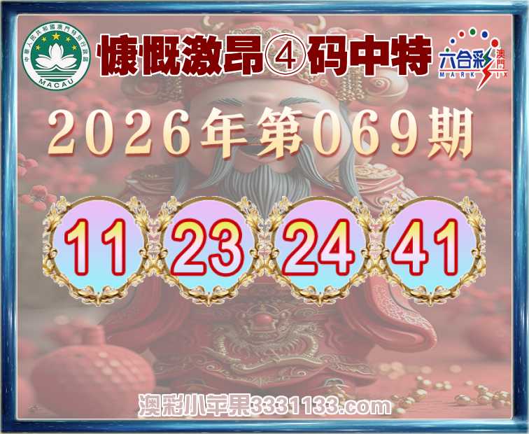 069期:『慷慨激昂』 ④码中特【11.23.24.41】开:24