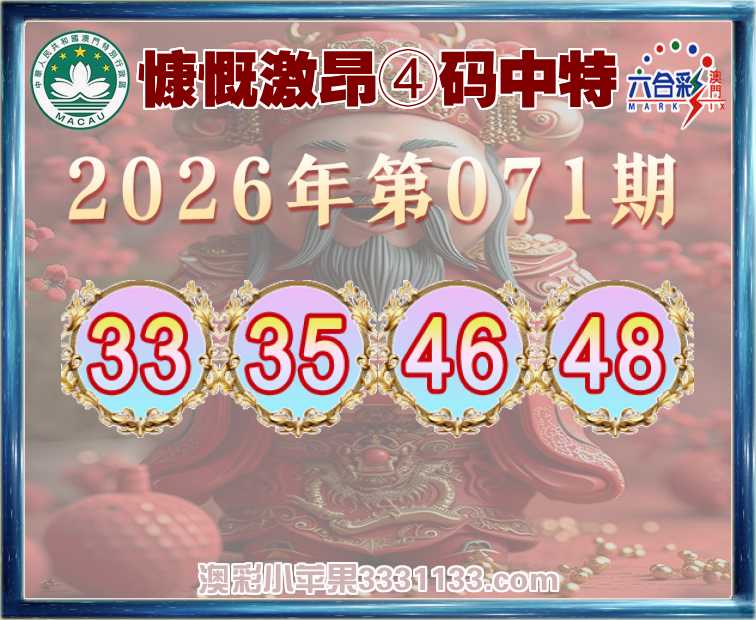 071期:『慷慨激昂』 ④码中特【33.35.46.48】开:48