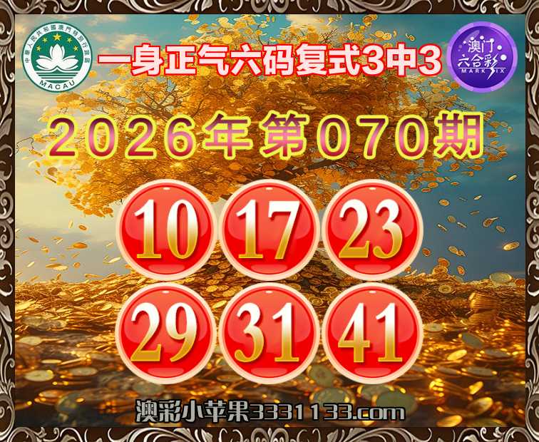 070期:【一身正气】 六码复式3中3