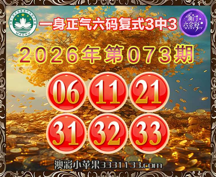073期:【一身正气】 六码复式3中3