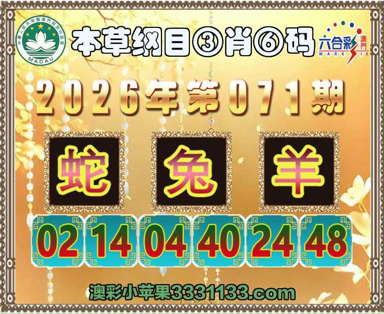 071期:〖本草纲目〗 ③肖⑥码【蛇兔】开:羊48