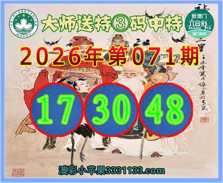 071期:『大师送特』 ③码中特【17.30.48】开:48