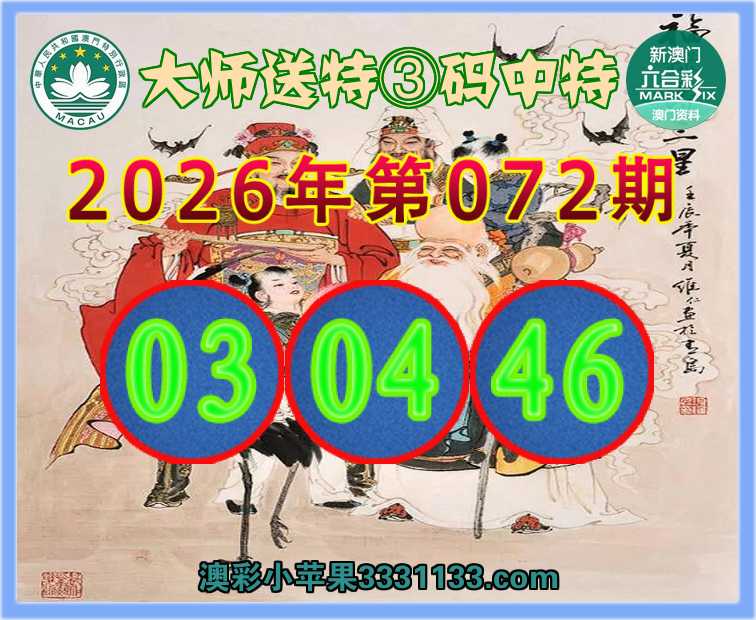 072期:『大师送特』 ③码中特【03.04.46】开:46