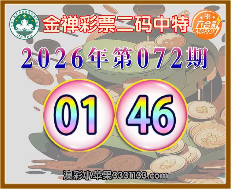 072期:〖金禅彩票〗 二码中特【01.46】开:46